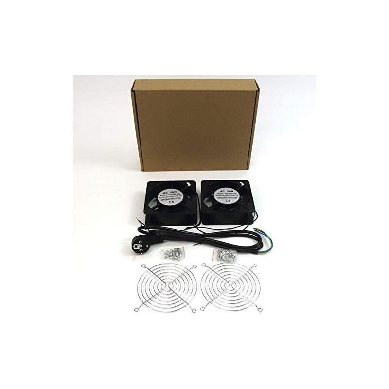 Kit ventilación con dos ventiladores 12cm Para fijación en cubierta de armarios rack 19? Con cable de alimentación a 230V