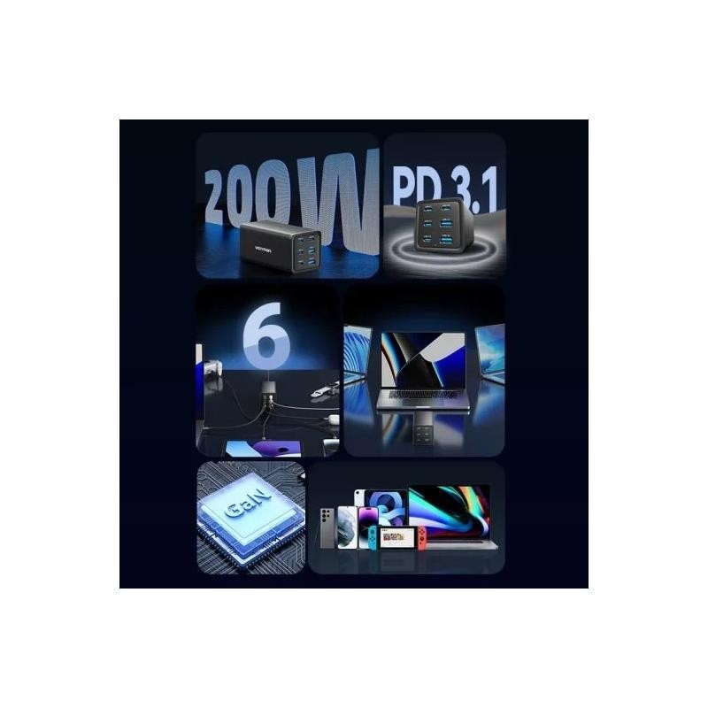 CARGADOR DE ESCRITORIO VENTION GAN 4XUSB-C 2XUSB-A 200W