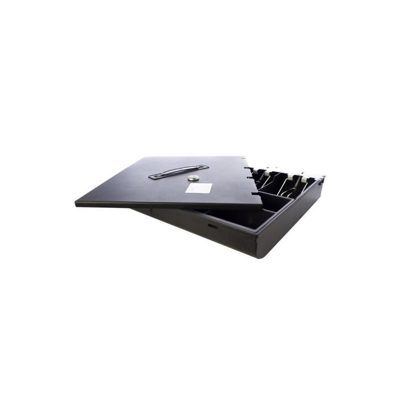 Ideal para transportar la caja del día en una bandeja portamonedas. Incluye llave y asa. Construido de acero inoxidable para garantizar su duración. Especialmente diseñado para los cajones de 41x42 cm.